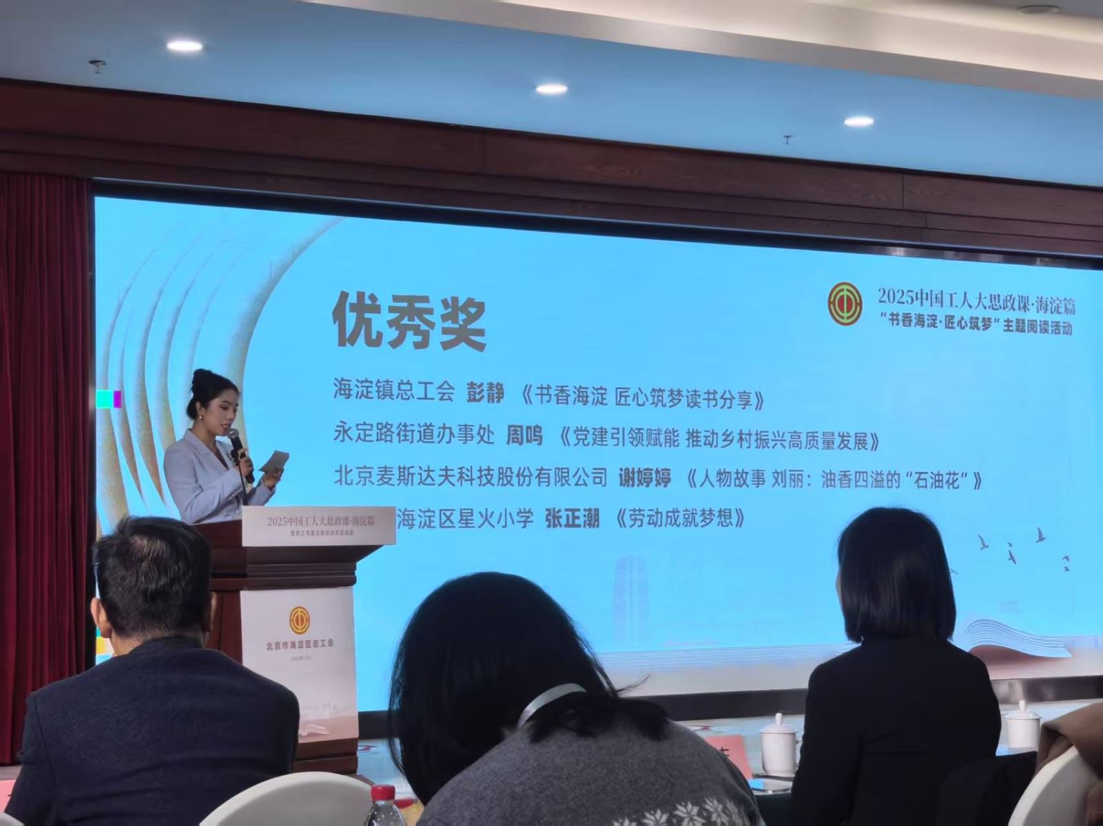 麦斯达夫工会诵读工运故事作品获海淀区职工读书视频活动优秀奖