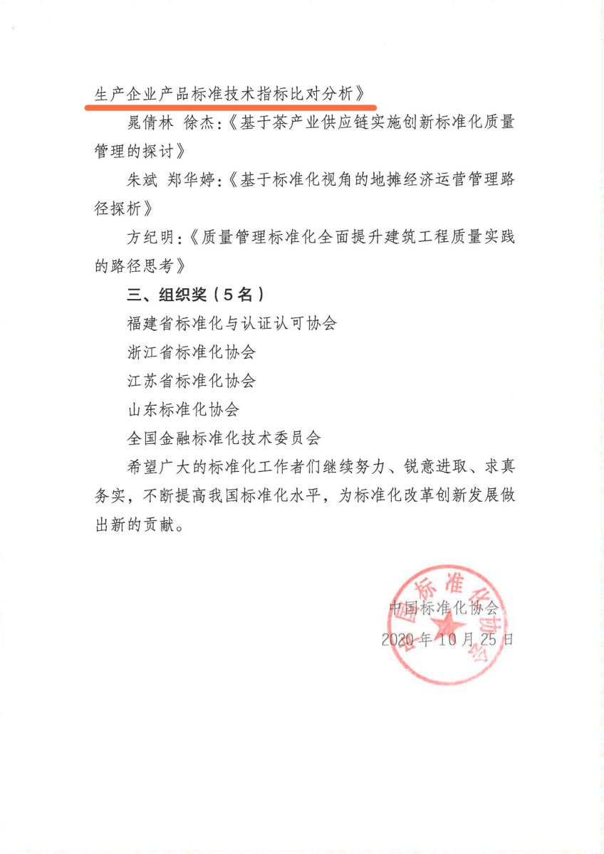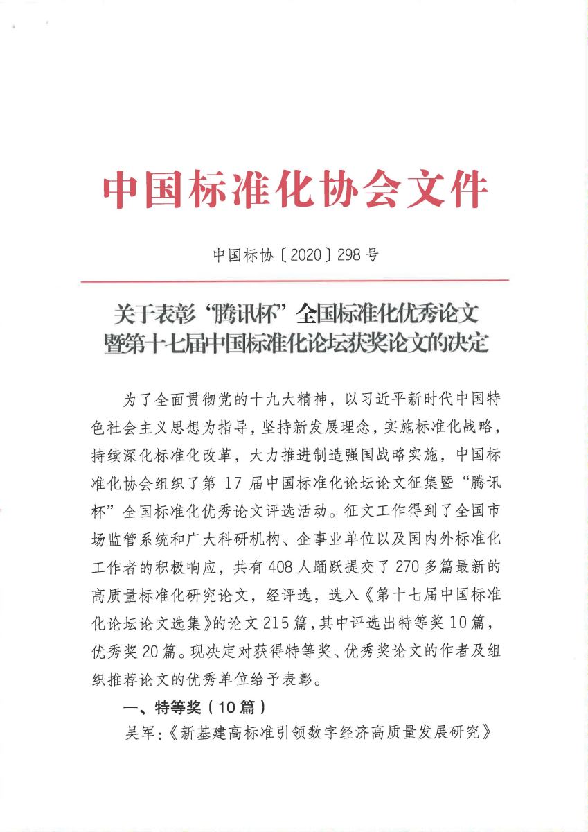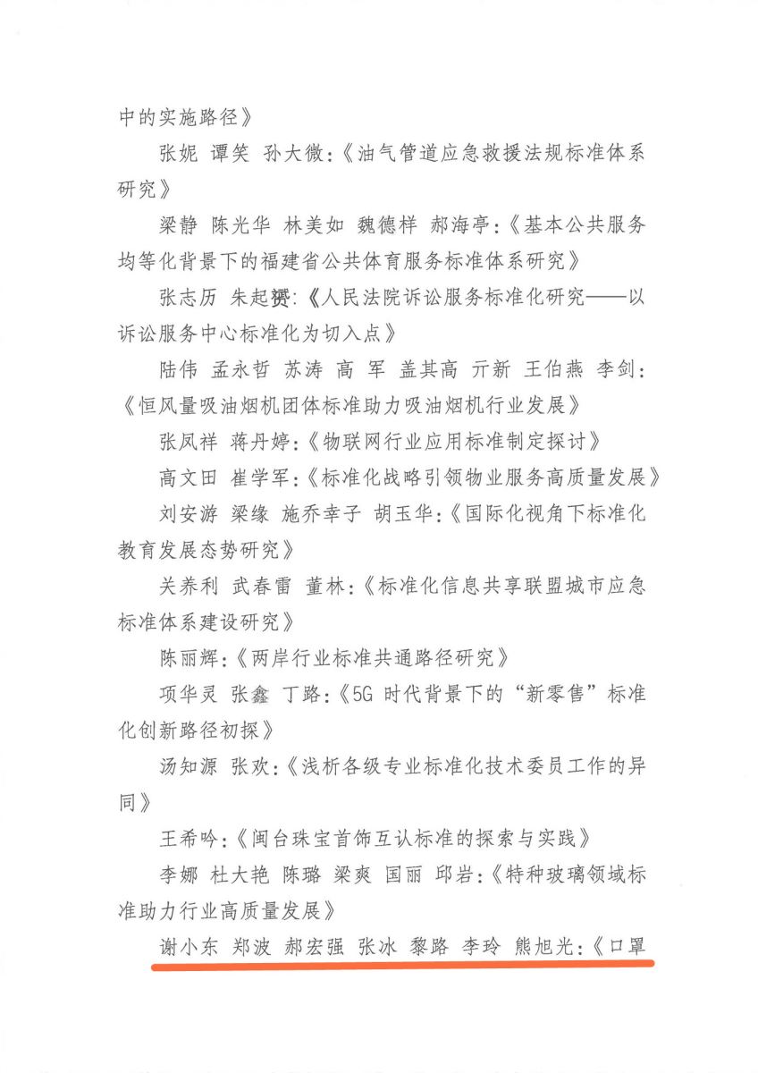 我所论文《口罩生产企业产品标准技术指标比对分析》获第十七届中国标准化论坛优秀奖