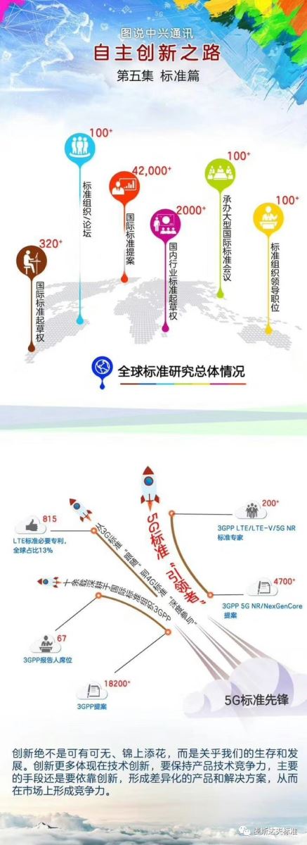 先抛开事件主角联想和华为,让我们看一看另一位5G国际标准的主要参与者——中兴通讯,近年在国际标准领域的高光表现: